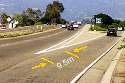 the westbound lane (green dot). |