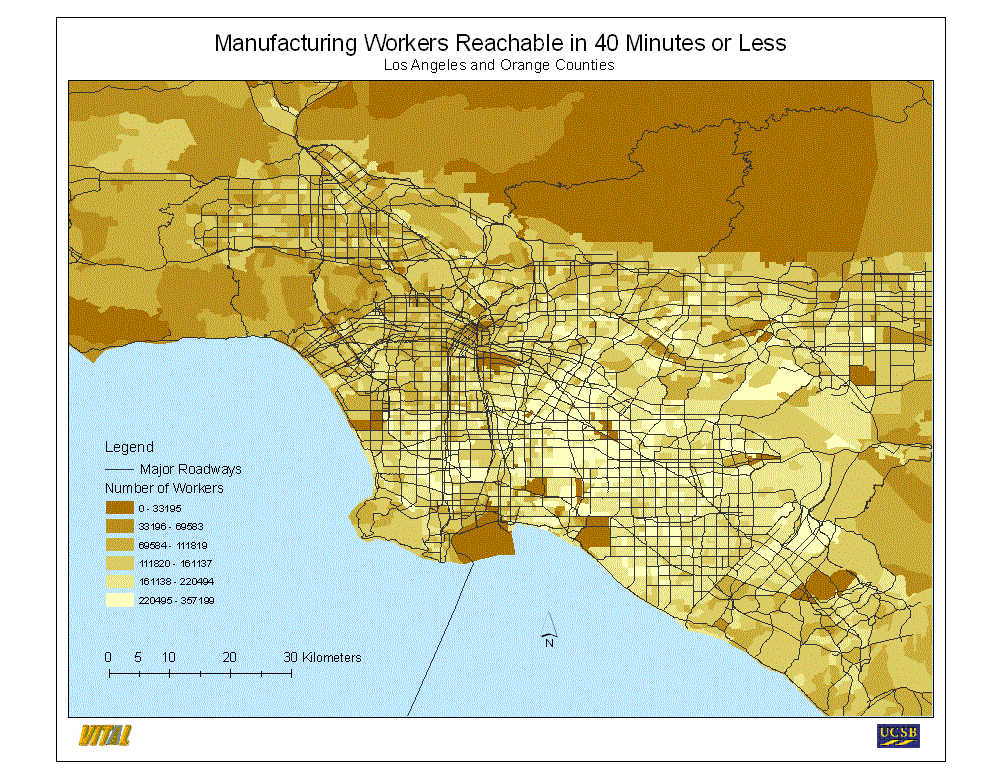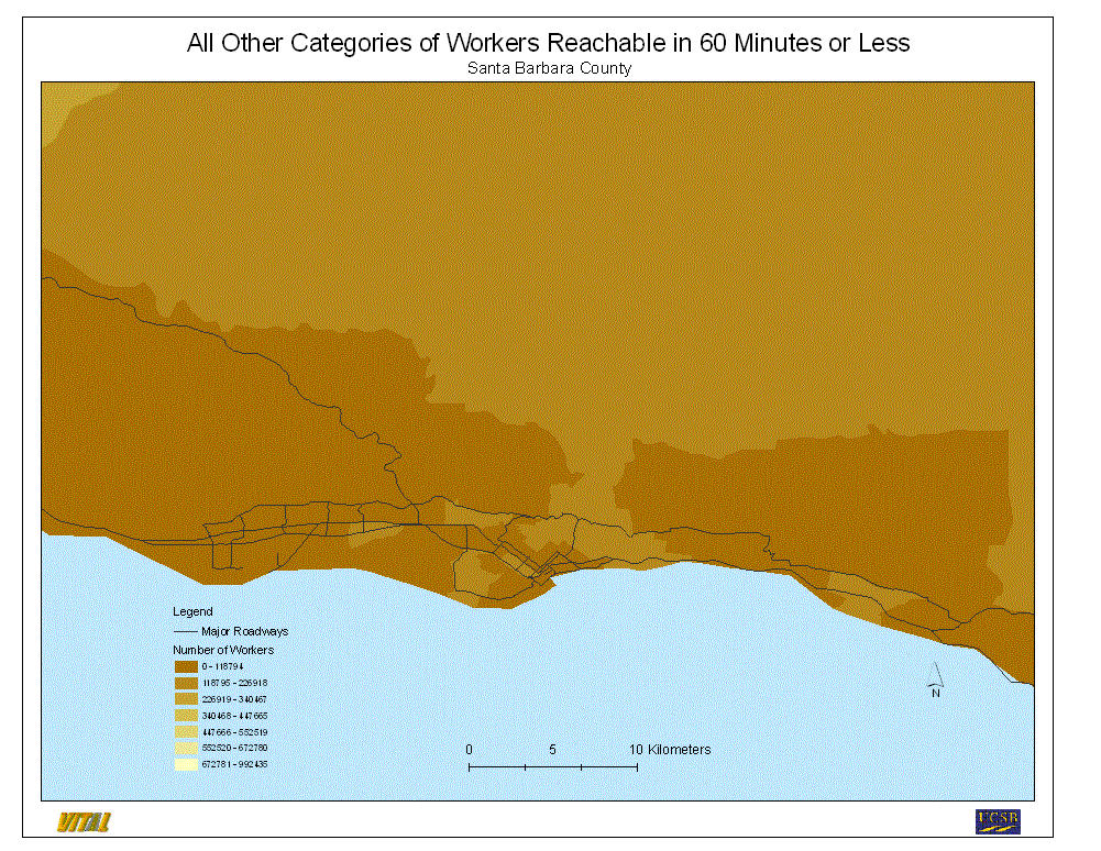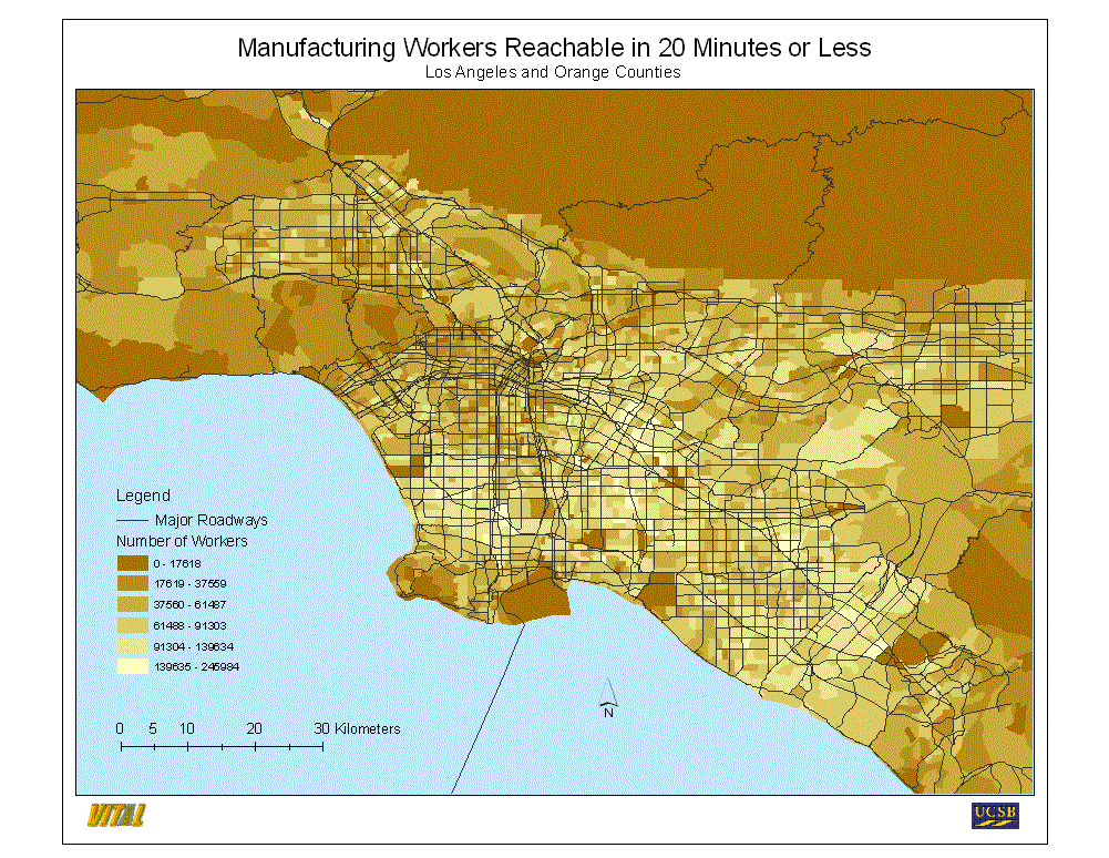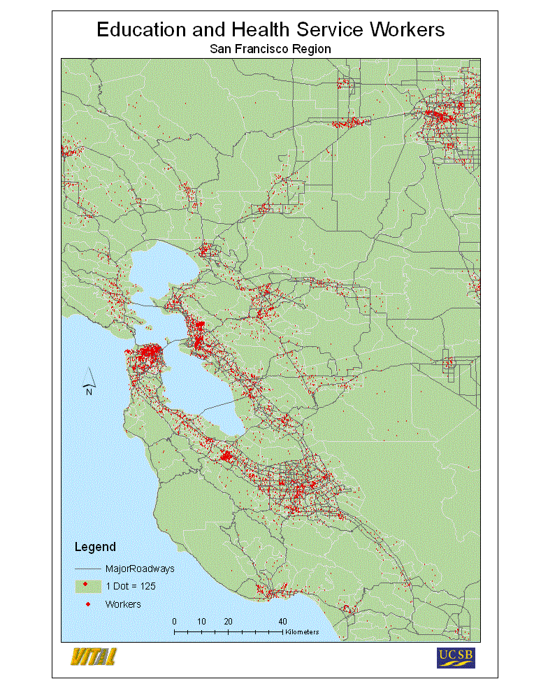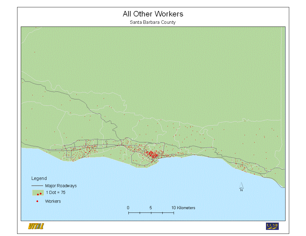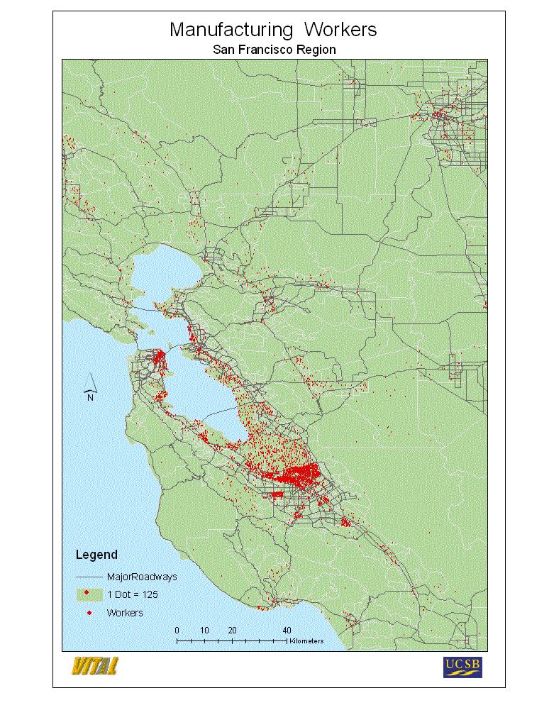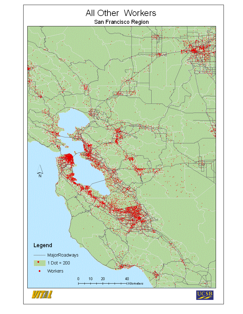 1. Numbers of workers in the following categories are mapped at their place of work, based on NAICS (formerly SIC) encoded data from the Census Transportation Planning Package (CTPP):